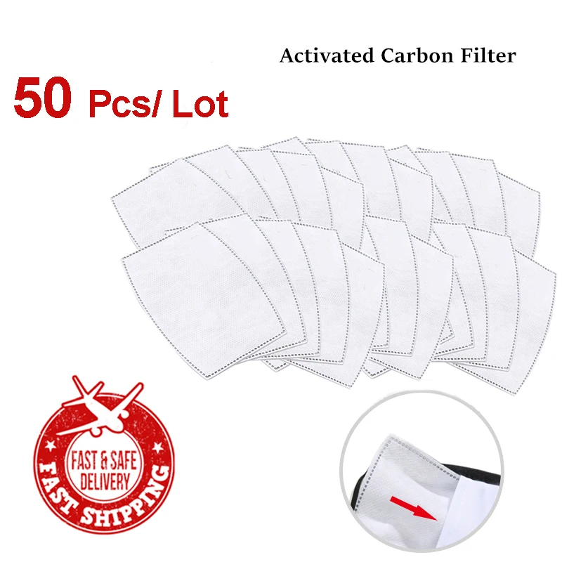 50 шт./лот PM2.5 маска фильтр для взрослых/детей Анти-пыль рот маска фильтр с активированным углем Антибактериальная маска 95% фильтр-ломтик