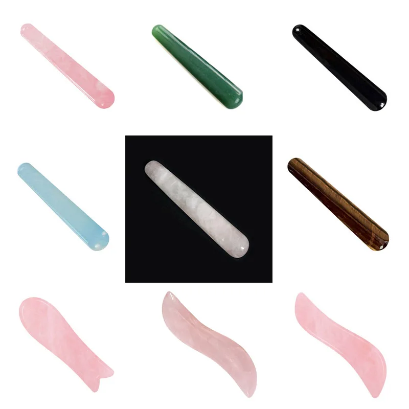 Натуральный розовый кварц палочки для Йони нефрит Кристальный массаж палочка Вагинальные мышцы подтяжка массаж камень Guasha Инструмент Масс...