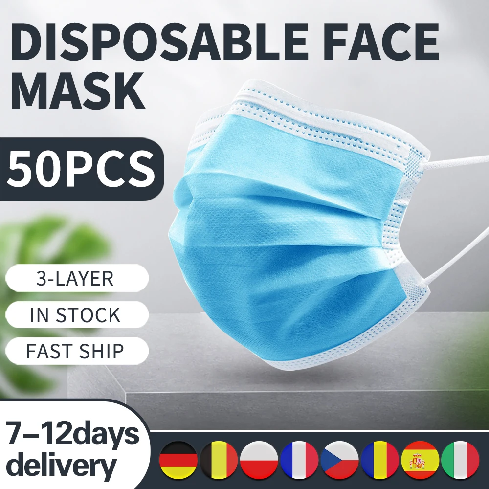 50 шт одноразовые маски для рта маска для лица 3-слойная фильтрация Анти-пыль Нетканая маска для лица маски для рта дышащая маска для ушей