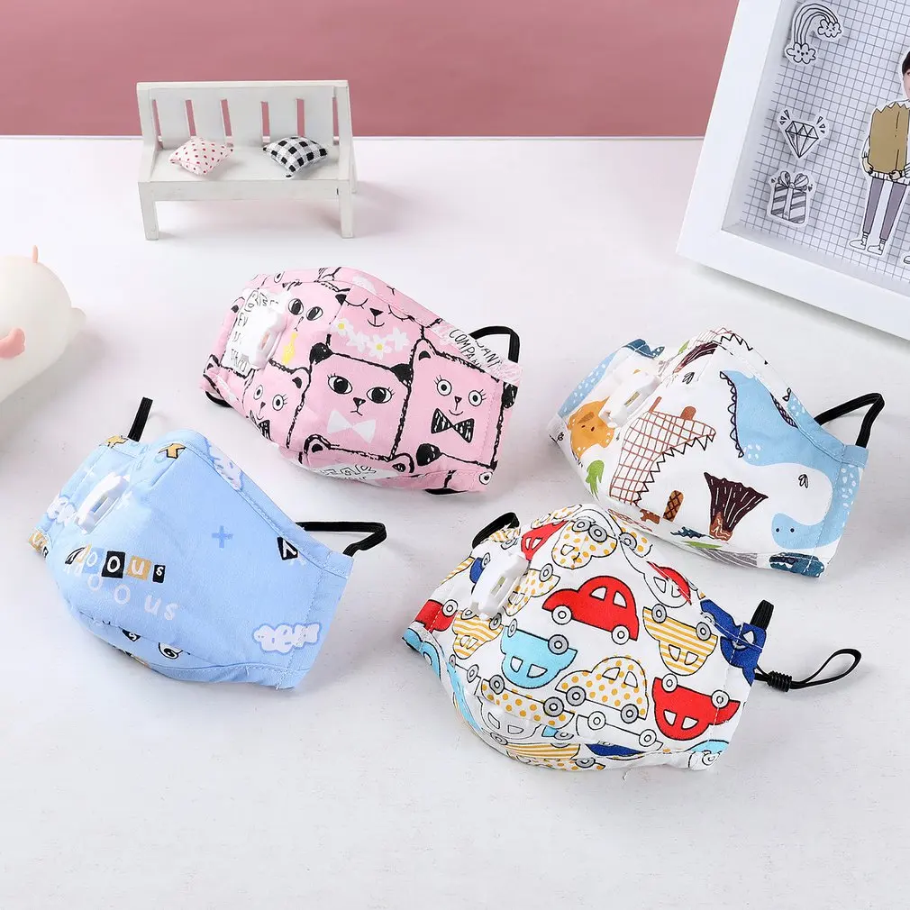Мультяшная противотуманная детская маска с дыхательным клапаном, регулируемая защита от пыли и гриппа, маска для рта, воздухопроницаемая 3D маска, 1 шт.