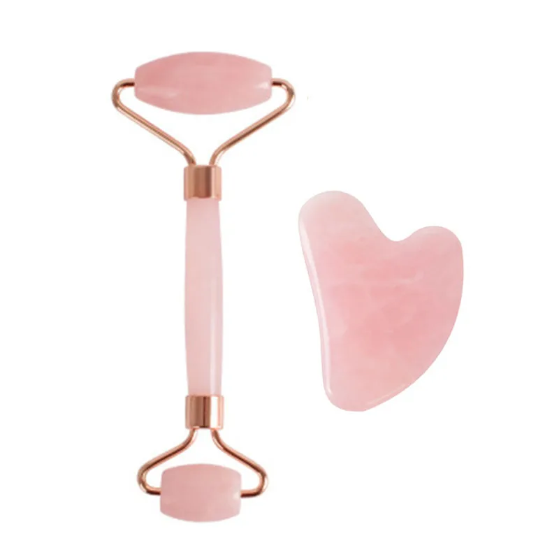 Роликовый массажер для лица из розового кварца, натуральный нефрит, роликовый лицевой массажный роликовый камень, Кристальный роликовый массажный набор для кожи