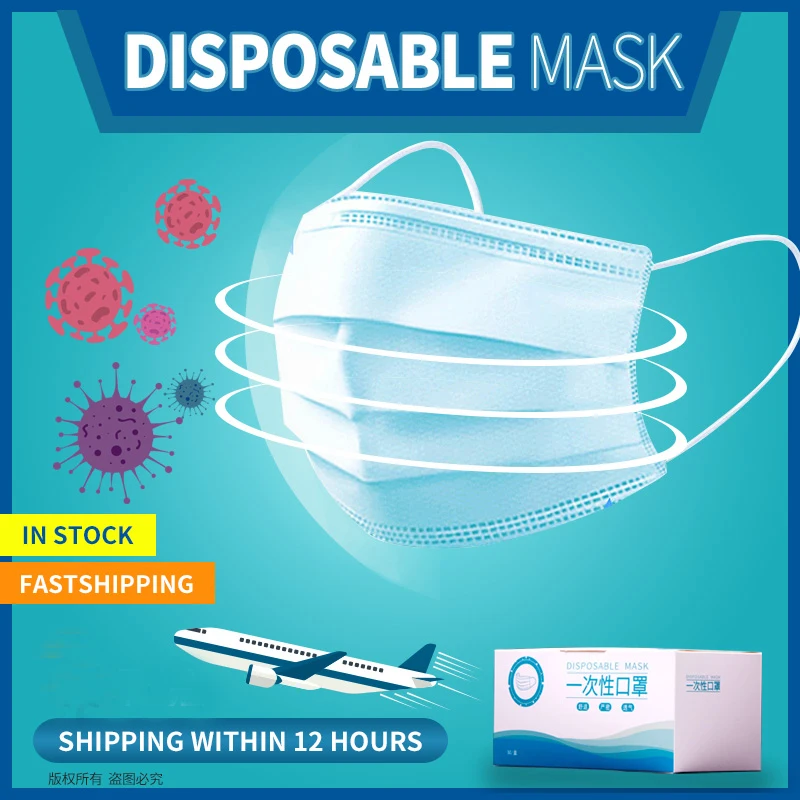Быстрая доставка 50/60 шт. 3 слоя защитная маска для лица Повседневная одноразовая анти-пыльная маска для рта эластичная защитная маска для ушей