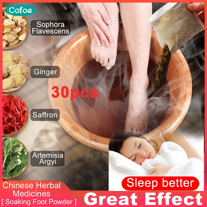 Пудра для ног Cofoe, 30 шт., китайская медицина, для улучшения сна, для очищения кожи от естественных трав, для спа-процедур, для здоровья ступней