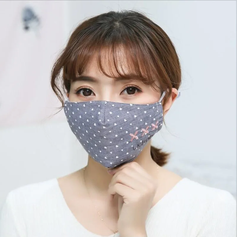 12 шт./лот, хлопковые маски с вышивкой в виде бабочки, Регулируемые моющиеся противопылевые маски для лица, ветрозащитные маски для рта MR155