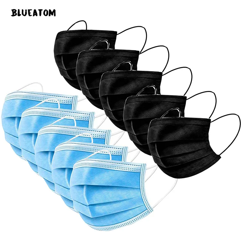 100% оригинальная синяя маска для рта, защитные маски для лица, 3 слоя одноразовых противопылевых ушных шлепанцев, быстрая доставка, 24 часа