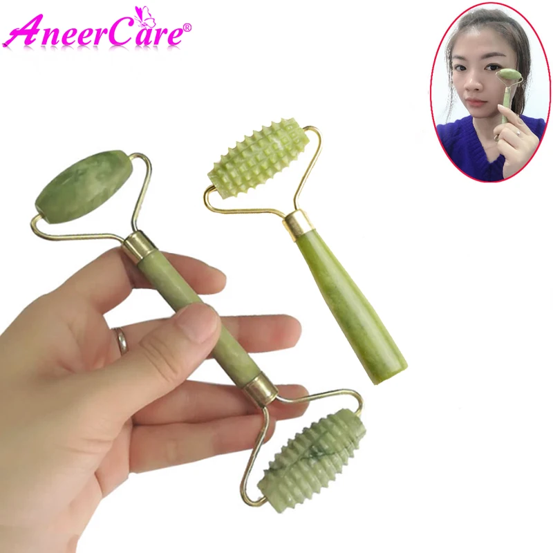 Нефритовый ролик-массажер зеленый для лица Натуральный здоровья лица Красота макет головы шеи уход за кожей ног лифтинг лица инструмент ро...