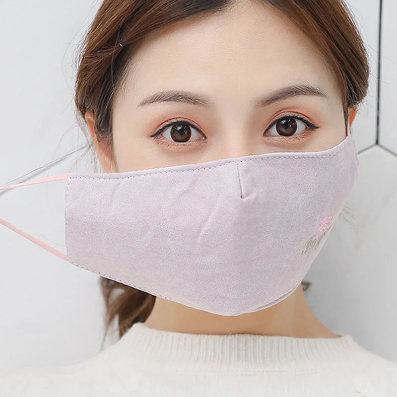 Хлопковая маска с вышивкой для рта, регулируемая моющаяся противопылевая маска, фильтр для лица, Ветрозащитная маска для рта MR165
