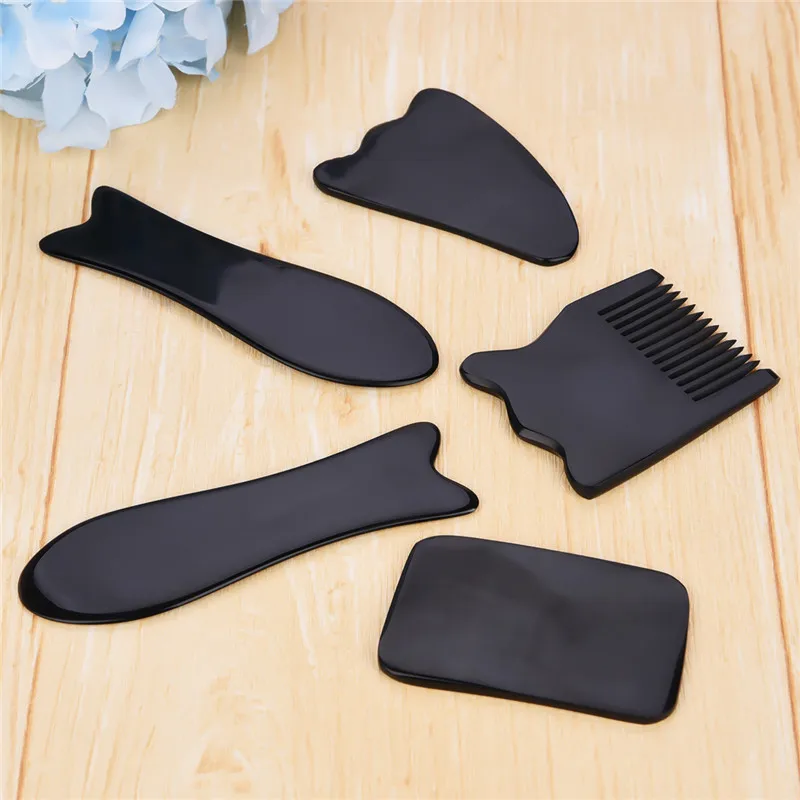 5 шт. Рог гуаша пластины натуральный черный рог скрабирующая пластина наборы набор гуаши ног для похудения гребень Иглоукалывание Массаж Зд...