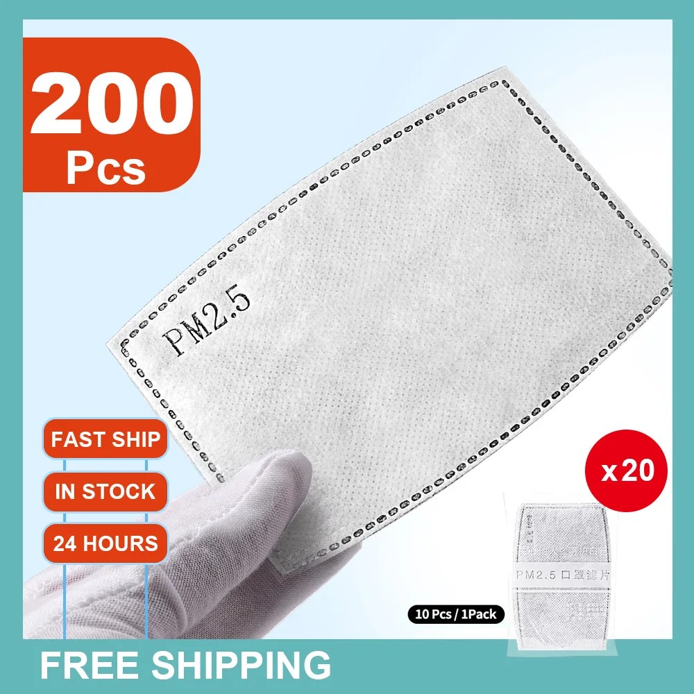 2-200 шт PM2.5 маска фильтровальная бумага 5Ply Анти Пыль рот маска для лица с активированным углем хлопок одноразовый фильтр Защитная для взрослых