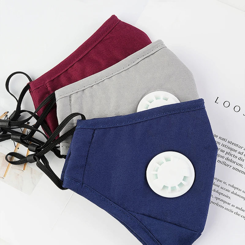 Хлопковая маска PM2.5 с защитой от дымки, дыхательный клапан, Пылезащитная маска для рта, фильтр с активированным углем, респиратор для рта, 3 цвета, маска для лица