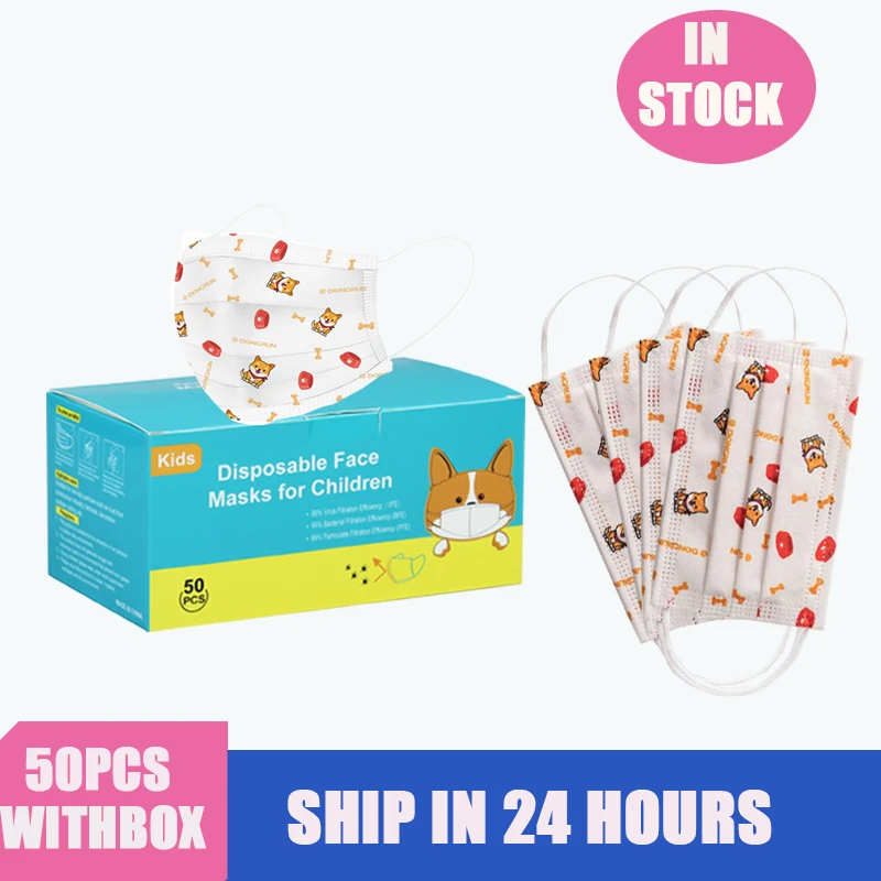 Одноразовая эластичная маска для лица для детей от 3 до 13 лет, мягкая дышащая маска для лица с рисунками из мультфильмов для детей