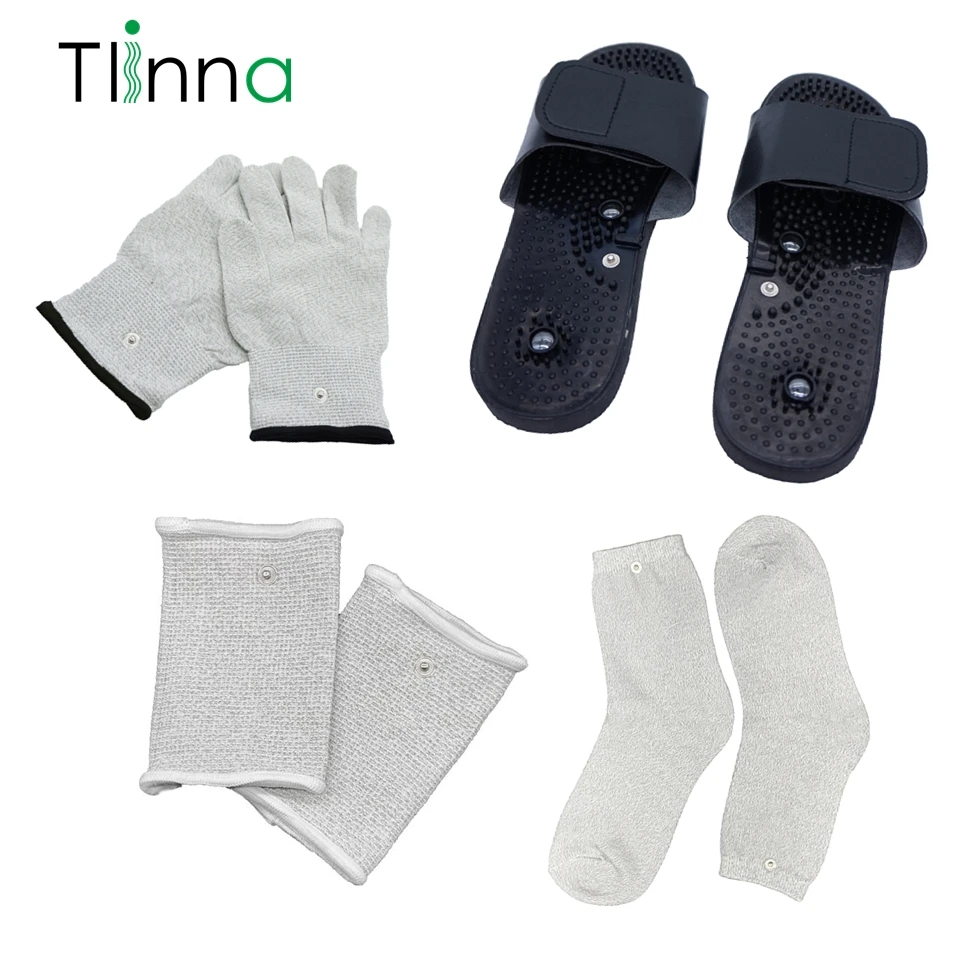 Электрический Тенс/EMS стимулятор мышц Проводящие Серебряные волокна перчатки тапочки носки для запястья Акупунктура Массажная Терапия аксессуары