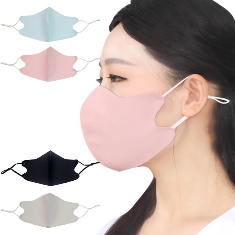 Ледяная шелковая Тканевая маска для лица, дышащая многоразовая противозагрязняющая маска для лица, Ветрозащитная маска для лица