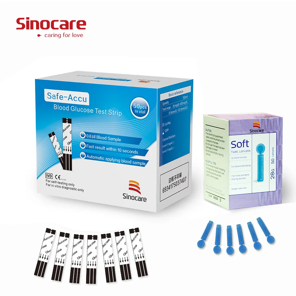 (50 шт/100 шт/200 шт) Sinocare Safe-Accu разделенные тест-полоски глюкозы в крови и Ланцеты для теста на диабет