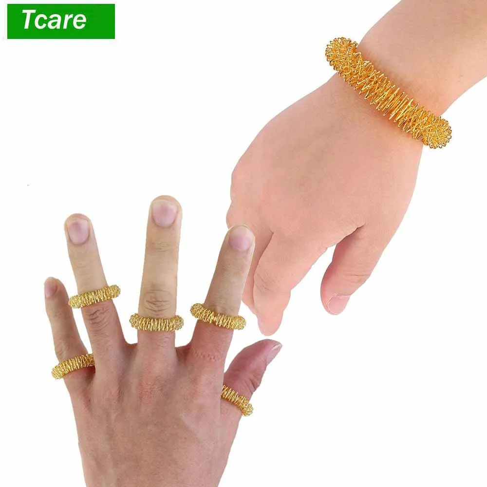 5 шт. Акупрессура массажные кольца + 2 шт. Массажер для запястья кольца Акупрессура кольцо набор медицина потрогать палец кольцо для детей по...