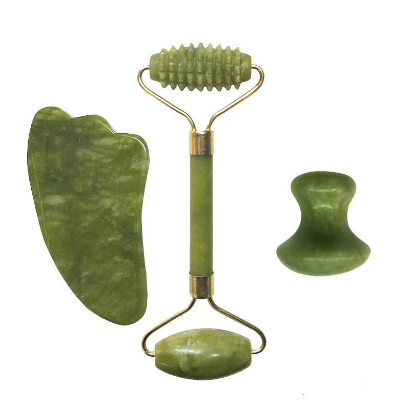 Натуральный нефритовый роликовый массажный набор, настоящий камень, массажер для лица, инструменты, доска для массажа лица, скребок, Нефритовый ролик, косметический инструмент