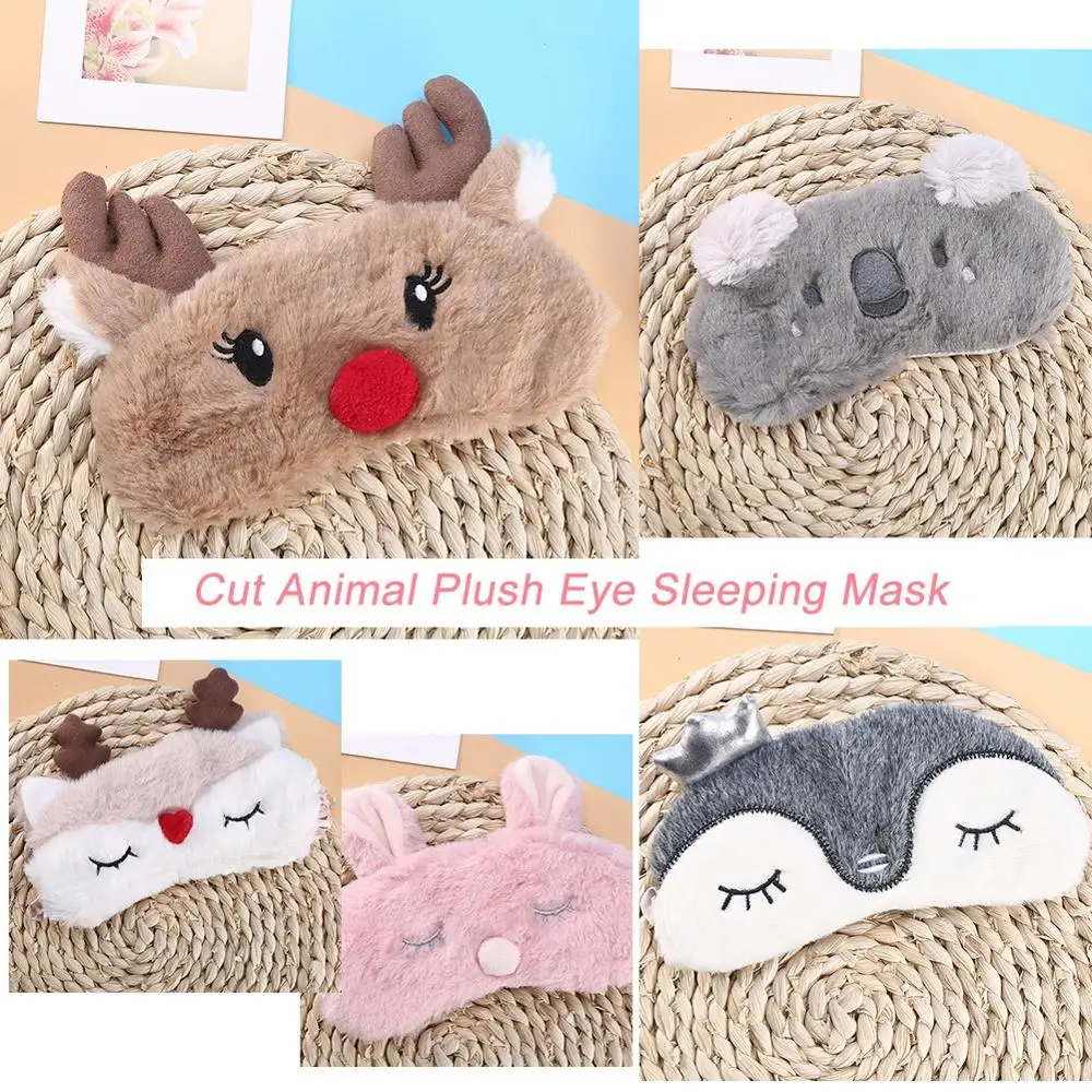 Милая маска для сна в виде животного, повязка на глаза, повязка на глаза, Рождественский олень, зимняя мультяшная маска для сна, плюшевая маска для сна