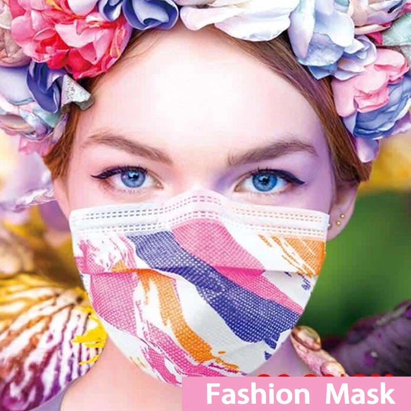 10 шт красочные взрослые женщины печати Одноразовые рот маски пыленепроницаемый нетканый материал 3 слоя модная маска