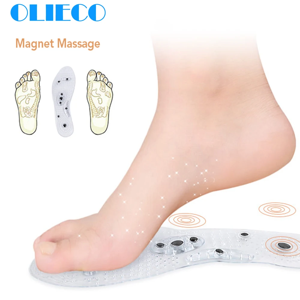 1 пара/2 шт OLIECO Магнитная терапия магнитные массажные стельки Прозрачная силиконовая колодка для обуви Здоровье Анти-усталость 8 магнитов те...
