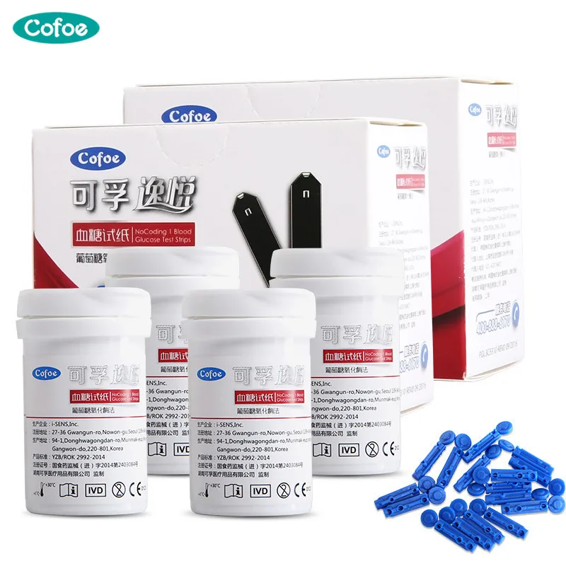 Только 50/100 шт Тесты полосками и иглы Cofoe для Cofoe Yiyue глюкометр без кодирования собирать кровь медицинские инструменты без устройства