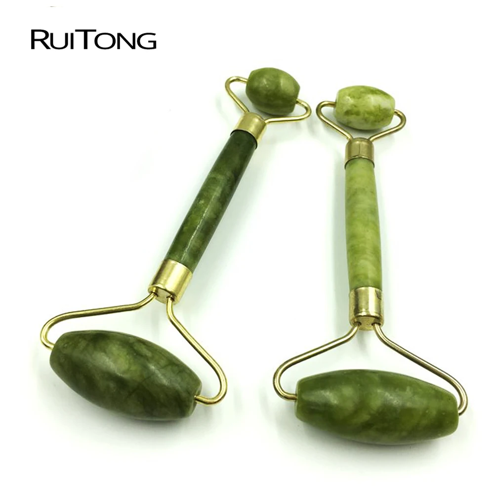 Двойной головкой роллер для массажа лица натурального нефрита для лица против морщин для похудения Body Shaper лицо релаксационный ролик Прямая...