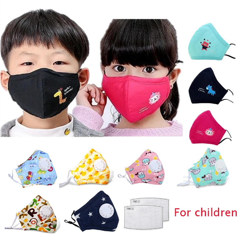 PM2.5 многоразовая маска для лица для детей, хлопковые противопылевые маски для рта для девочек, 2 шт., фильтры, мультяшный дышащий респиратор