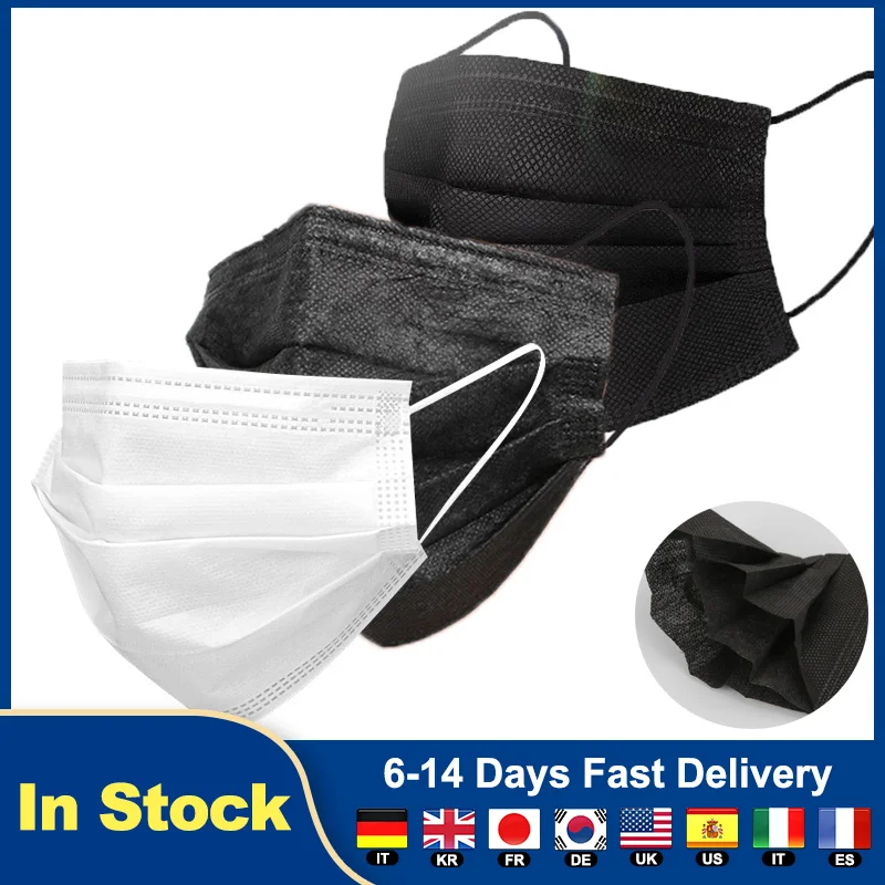 50 шт белые черные одноразовые 3 слоя Пылезащитная Маска Анти-пыль одноразовая маска 3-слойная Нетканая маска для лица ушные маски