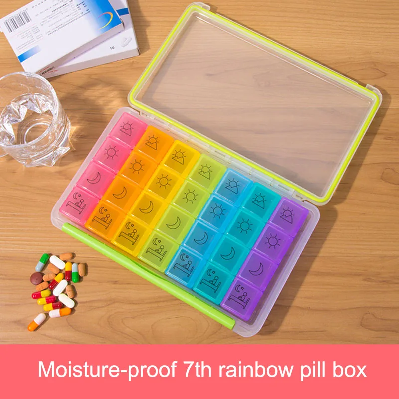 Новый Еженедельный портативный 28 радужных цветов коробка для таблеток портативный дорожный органайзер для таблеток с влагостойким дизайном больших отсеков