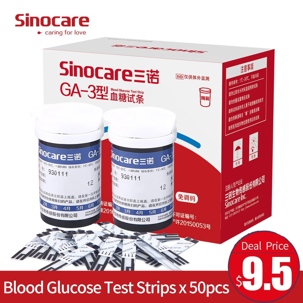 Sinocare Sannuo GA-3 глюкозы в крови 50 тест-полоски в бутылках и 50 ланцетов для диабета