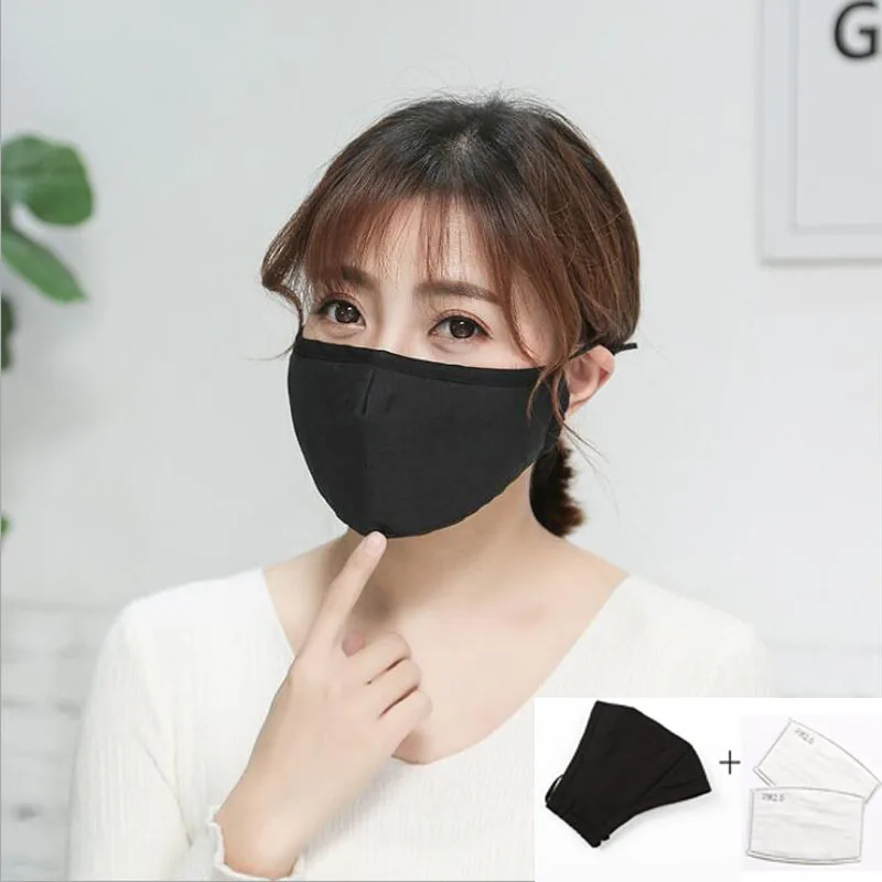 Корейская PM2.5 Тканевая маска для лица против дымки/Защита от пыли бактериальная маска для рта респиратор с угольным фильтром KN95 черная маска