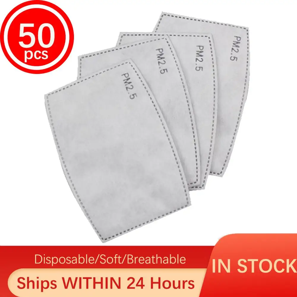 50 шт., 5-слойный фильтр, маски для лица PM2.5, маска с активированным углем для лица, фильтр, анти-дымка, маска для рта, прокладка, Защитная для взрослых детей