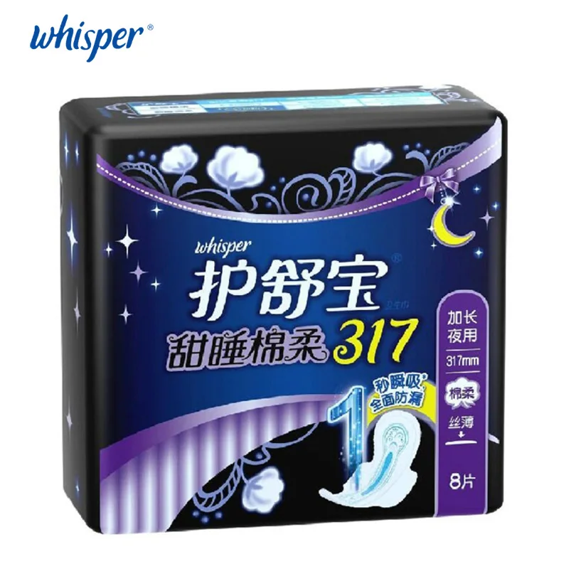 Мягкий шепот сетчатые гигиенические прокладки с крылышками ультра тонкий леди прокладки комфортного ночного Применение 317 мм 8 колодки/упа...