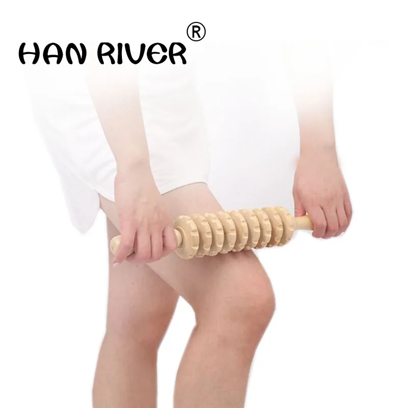 Йога Меридиан бар без краски экрю девять тонкой вал колеса весь массажный валик для тела стучал его талии массаж спины шеи ног Деревянный m