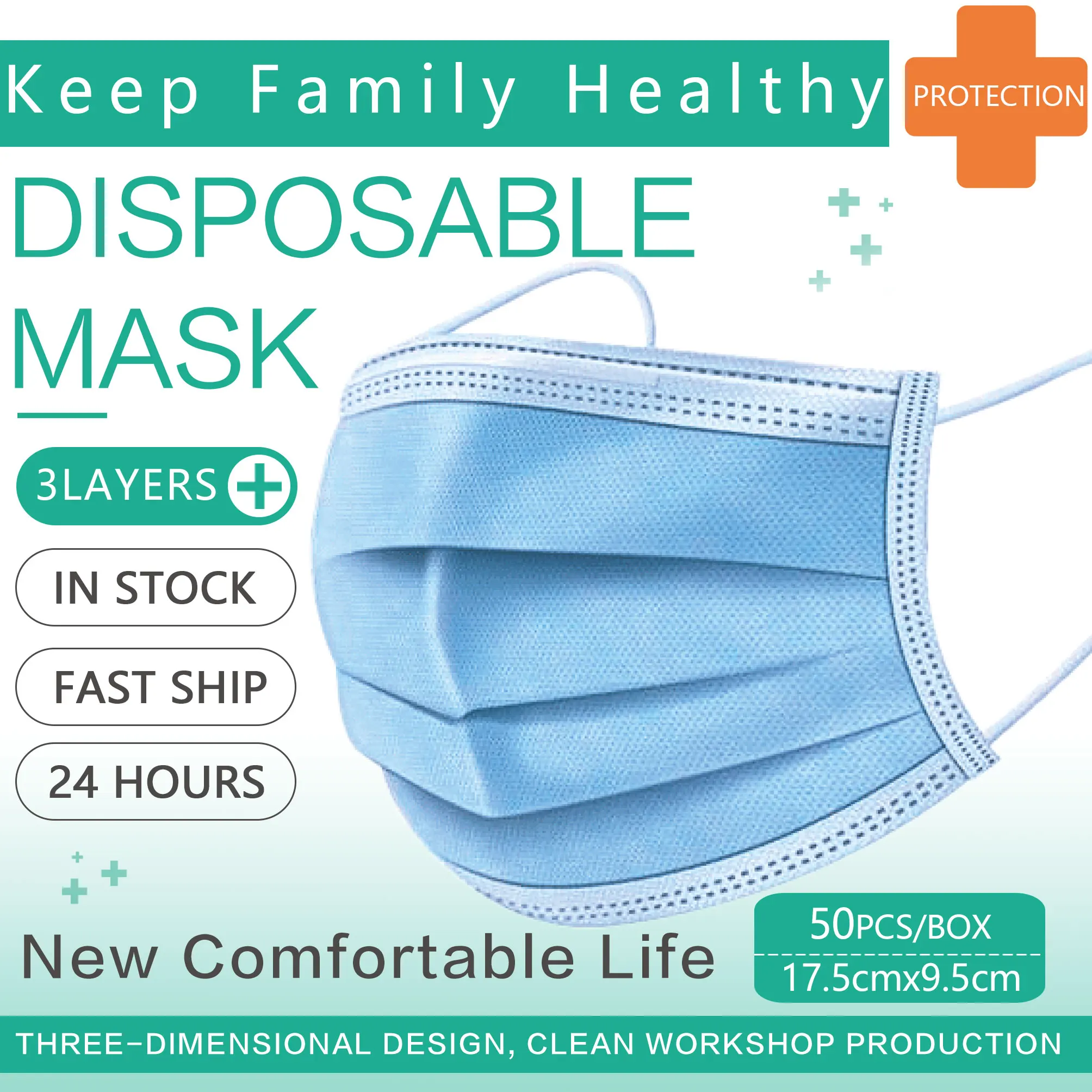 Одноразовая маска для лица 3 слоя Фильтр маска для лица одноразовая маска пылезащитные маски для лица маска для рта дышащая маска 50 шт 100 шт