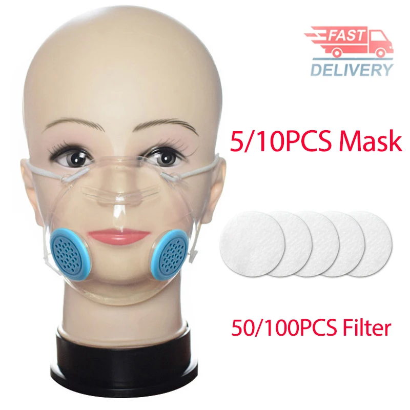 Прозрачные маски для лица с 100 шт. Нетканый фильтр Защита от пыли маска для рта PM2.5 респиратор 95% фильтрация рот щиты