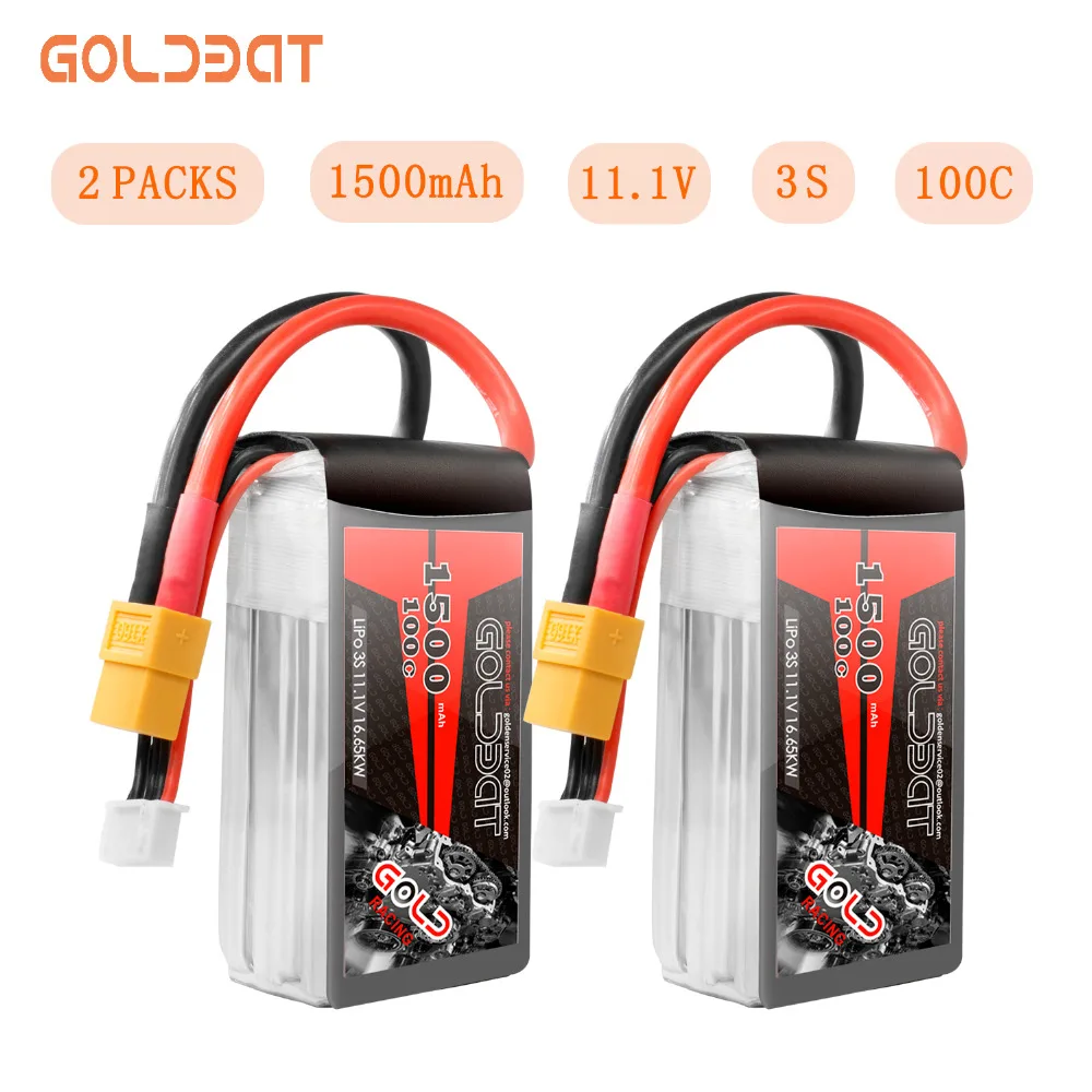 2 единицы GOLDBAT Lipo Батарея 1500 mAh 3 S 11,1 V 100C Батарея 3 S Lipo 1500 mah Батарея 11,1 v Softcase с XT60 разъем для fpv Хели
