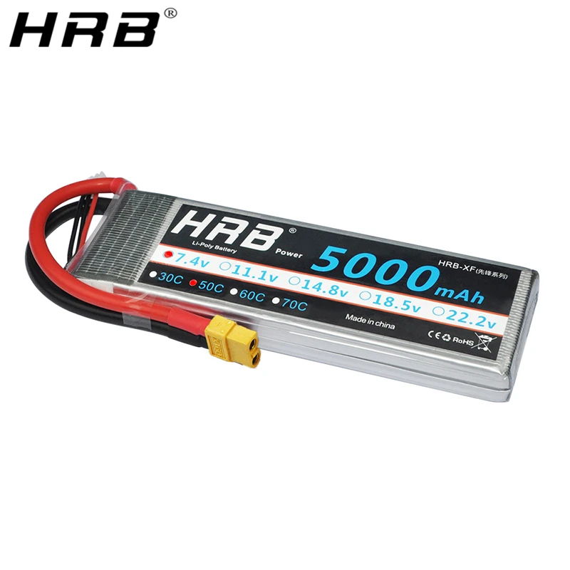 HRB 7,4 V 5000 mah LiPo Батарея 2 S Деканы XT90 XT60 EC5 T 50C для RC приманка лодка Квадрокоптер самолет Race TRX автомобили грузовик Запчасти 10AWG