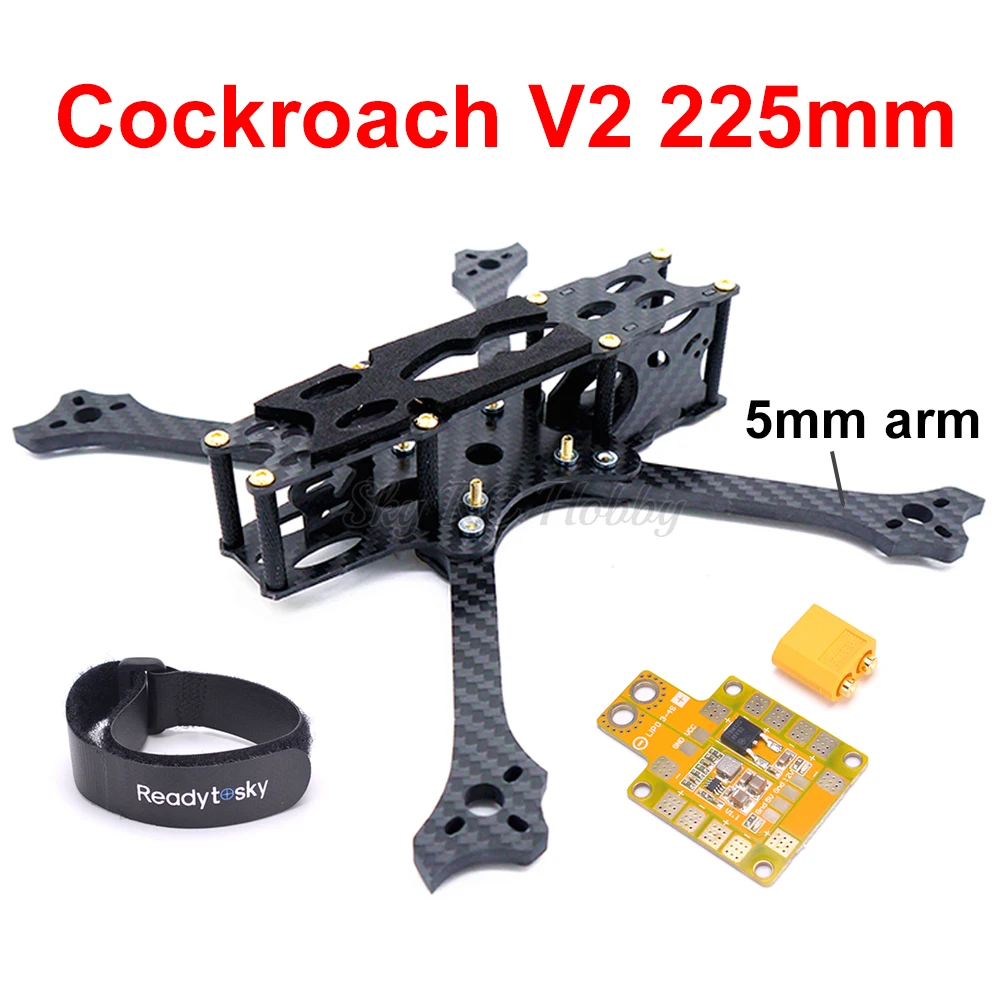 Тараканами средство V2 225 колесная база 225 мм 5 дюймов углеродное волокно X рама квадрокоптера с 5 мм/5 V 12 V PDB для RC гоночный Дрон с видом от перво...
