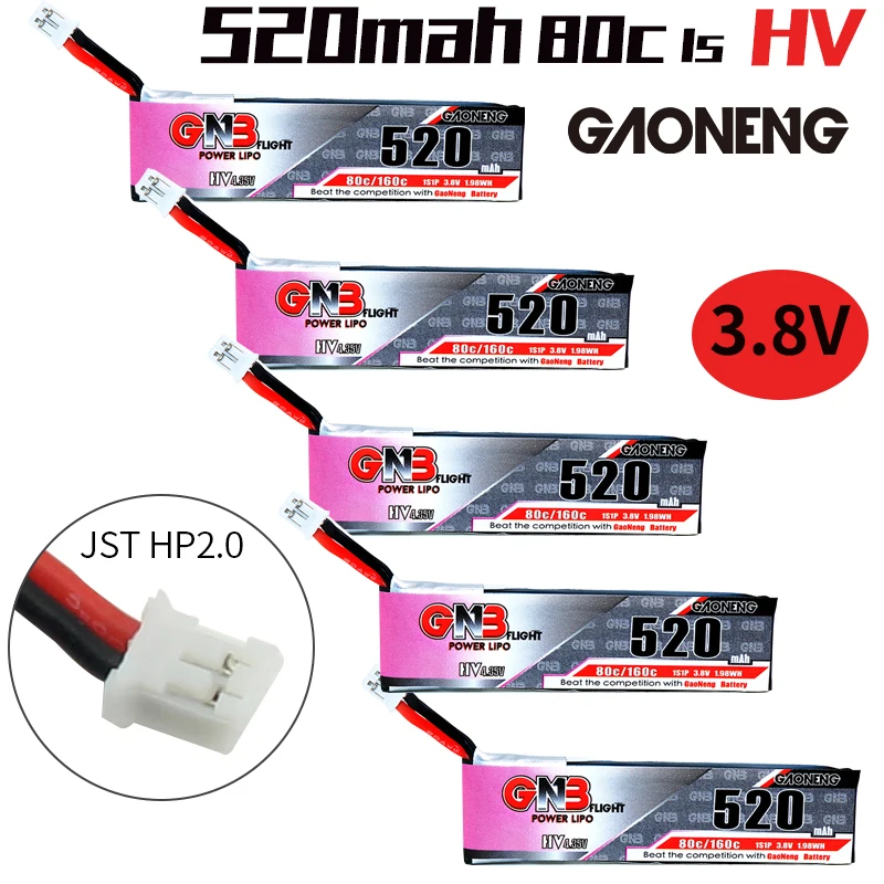 Батарейки Gaoneng GNB FPV, 5 шт., 520 мАч, 3,8 В 80C, 1S, HV, 4,35 в, PH2.0, разъем Lipo для Emax Tinyhawk, Kingkong, LDARC TINY