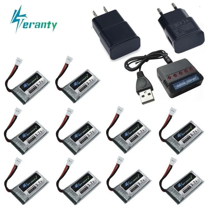 3,7 V 380 mah Lipo батарея + 10 шт USB зарядное устройство запасные части для Hubsan X4 H107 H107L H107D JD385 JD388 3,7 v Дрон батарея 752035