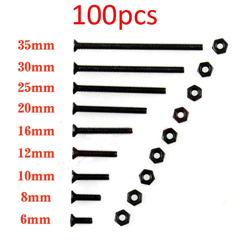 100 шт. M2 6 мм/8 мм/10 мм/12 мм/16 мм/20 мм/25 мм/30 мм/35 мм винты с потайной головкой черные гайки для RC Tamiya Mini 4WD Car комплектующие для самостоятельной сборки