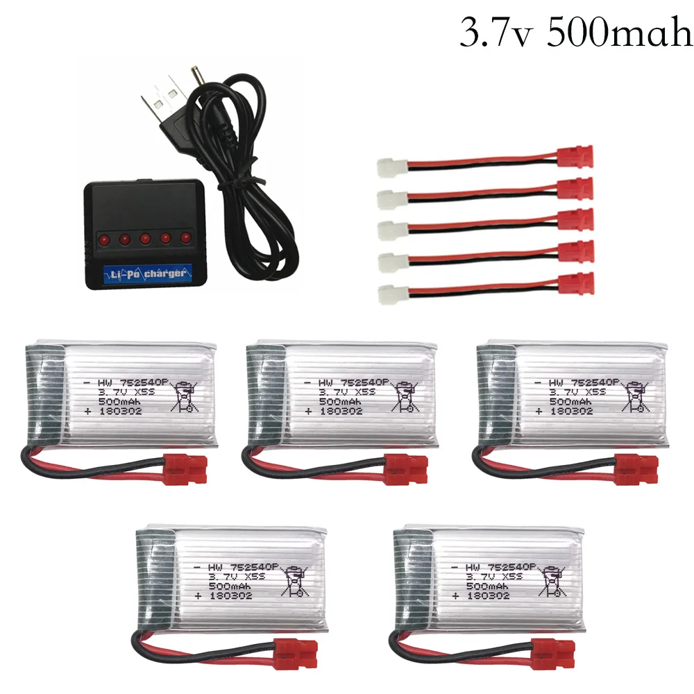 5 шт./лот 3,7 В 500 мАч Дрон с перезаряжаемым аккумулятором литий-полимерный аккумулятор 752540P + зарядное устройство для RC Syma X5C X5SC M68 Cheerson CX-30 батарея