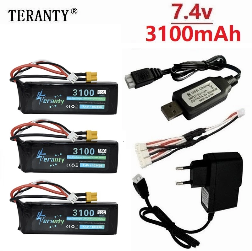 Оригинальный 7,4 V 3100mAh Lipo аккумулятор для MJX Bugs 3 B3 RC Quadcopter запасные части 7,4 v аккумуляторная батарея + зарядное устройство 7,4 v 1800mah