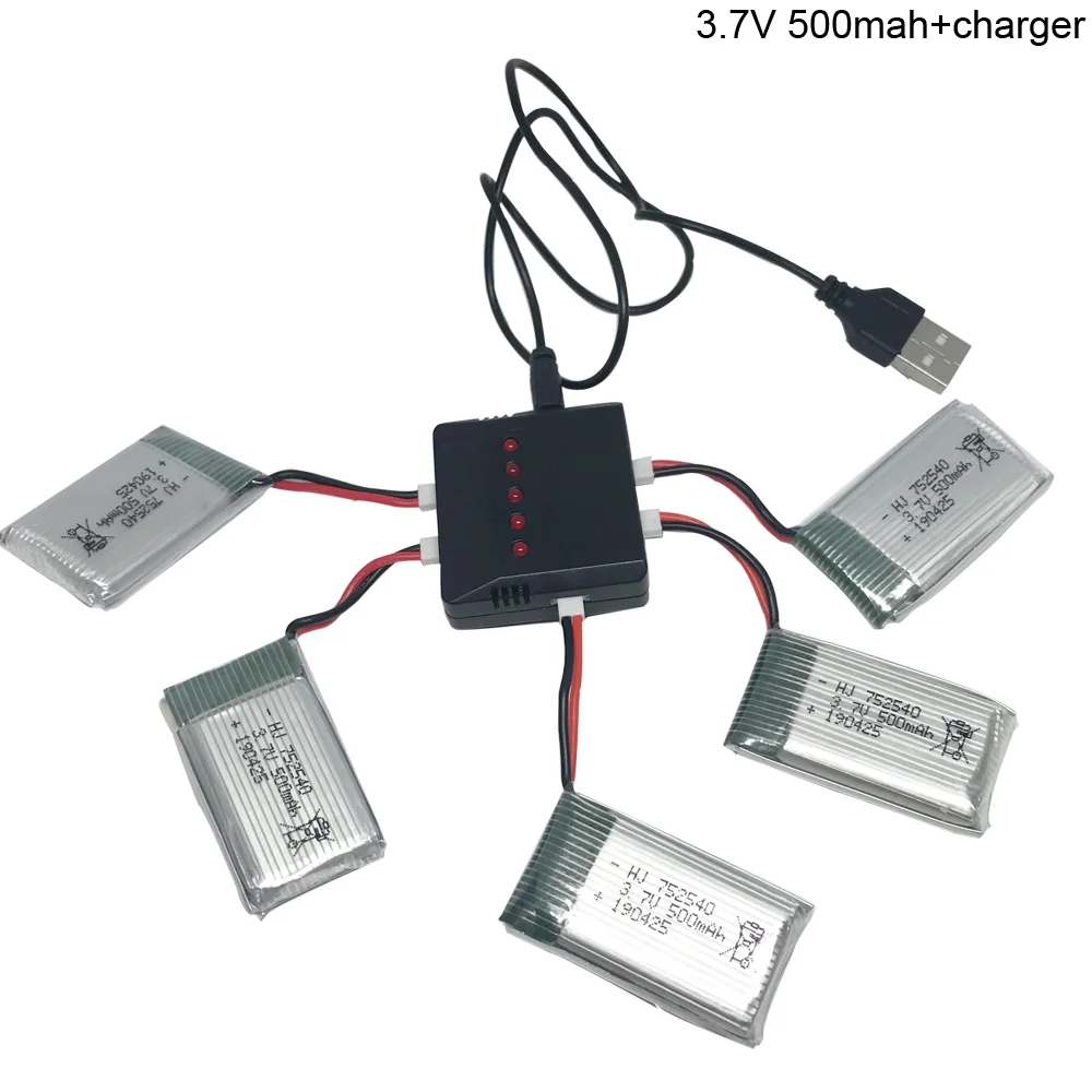 Литий-полимерный аккумулятор с зарядным устройством для Syma X5C X5SW M68 Cheerson CX-30 H5C, 3,7 В, 500 мАч, литий-полимерная батарея 752540