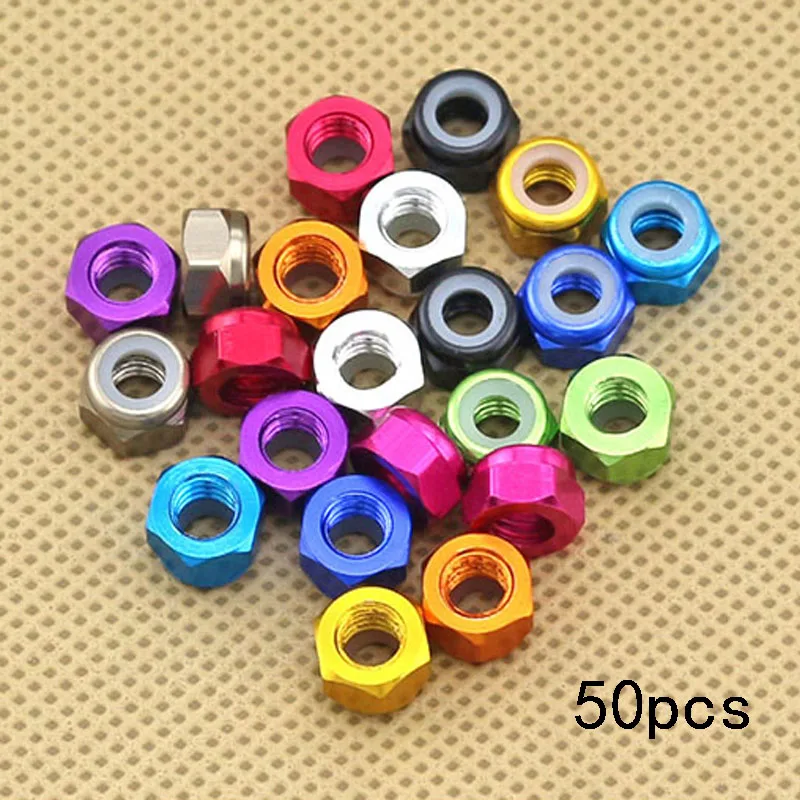 50 шт. алюминиевый сплав M2 гайка замок гайка анти-свободные винты винт крышка для RC Tamiya мини 4WD гоночный автомобиль DIY Acc