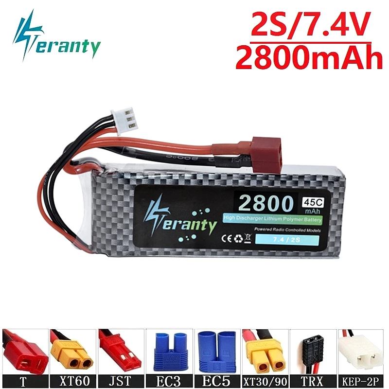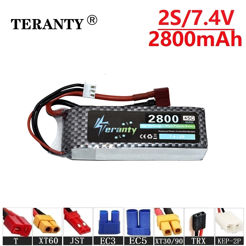 Teranty аккумулятор 45C 7,4 v 2800maH Lipo для радиоуправляемого дрона, лодки, квадрокоптера, запасная часть 2s 2200mah 7,4 v, перезаряжаемый аккумулятор, Радио...