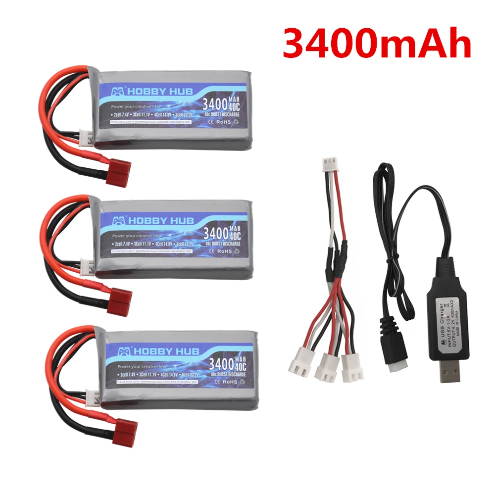 7,4 v 3400mah Lipo аккумулятор для Wltoys 12428 12423 RC четырехколесный RC автомобиль 1500mAH 7,4 v батарея Feiyue 03 Q39 RC часть зарядное устройство