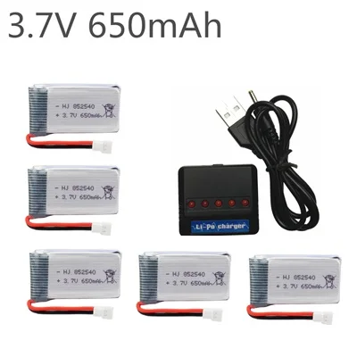 5 шт. 3,7 В 650 мАч Drone Перезаряжаемые литий-полимерный Батарея 802540 + USB Зарядное устройство набор для X5C X5C-1 X5 H5C Quadcopter