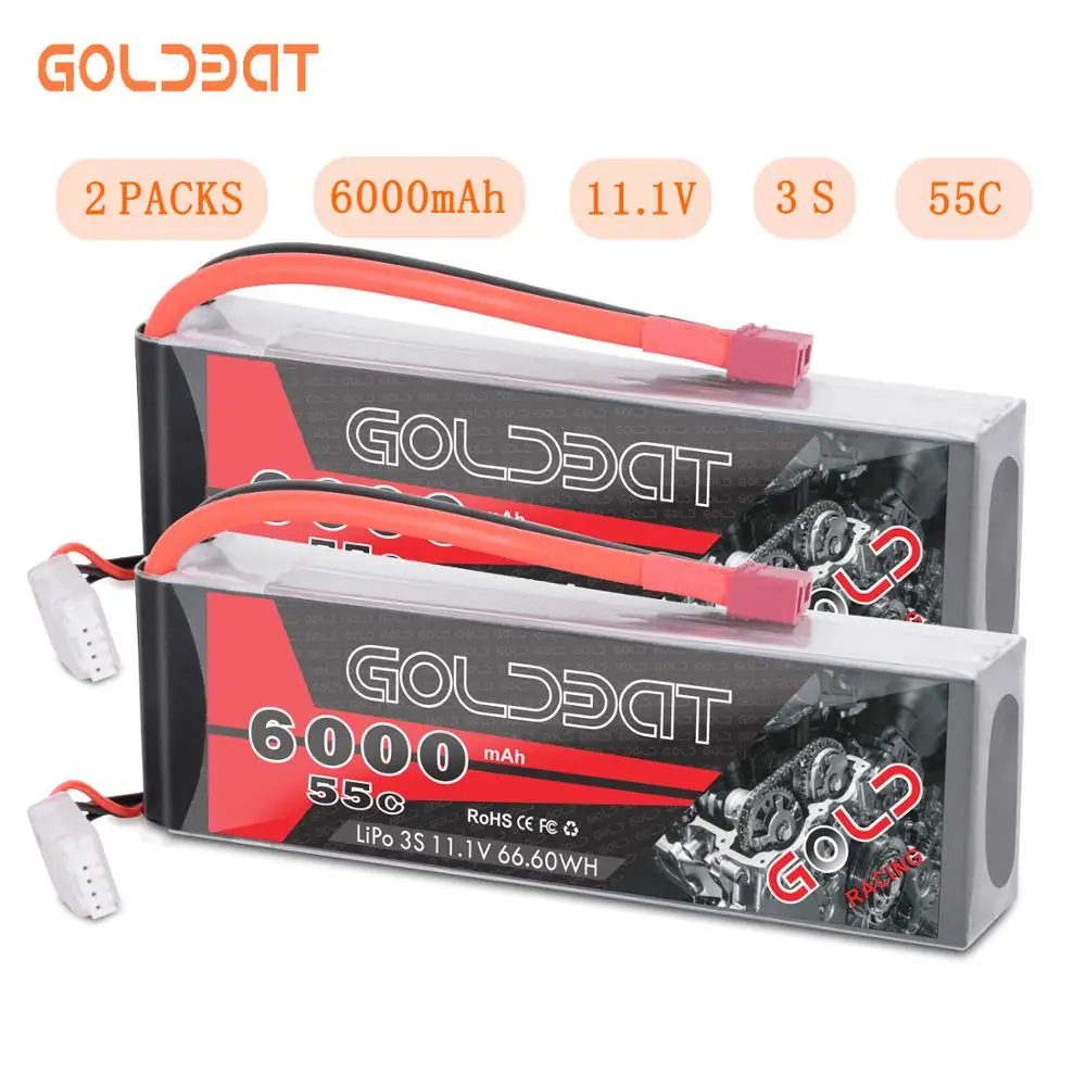 2 единицы GOLDBAT 6000 мАч lipo батарея 11,1 В RC автомобиль 3 S Lipo батарея 11,1 В литий-полимерный, Радиоуправляемый аккумулятор fpv 55C с разъем типа «deans» дл...