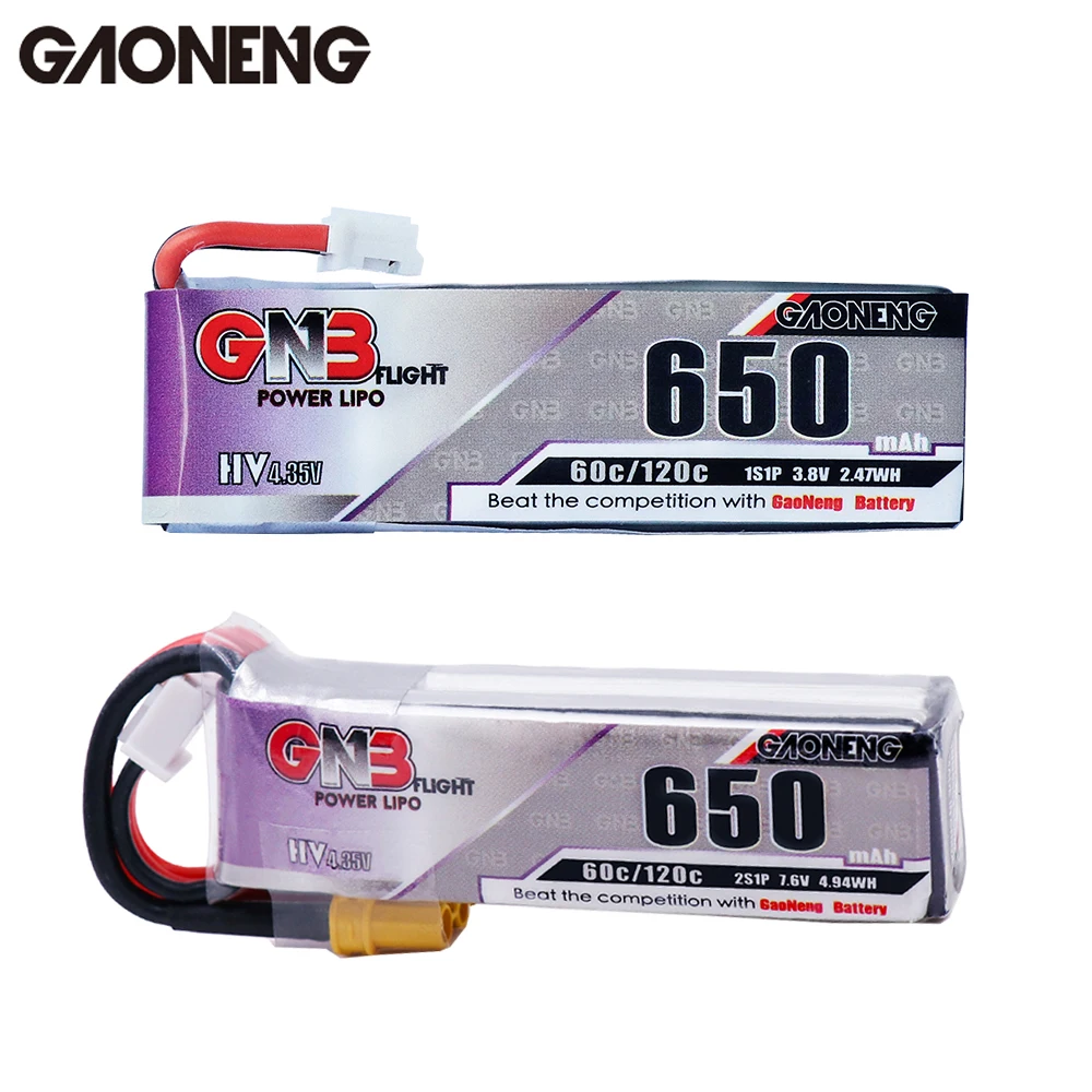 Аккумулятор Gaoneng GNB Lipo 650mAh 60C 1s 2s HV с разъемом PH2.0 XT30 для Emax Tinyhawk Kingkong LDARC TINY